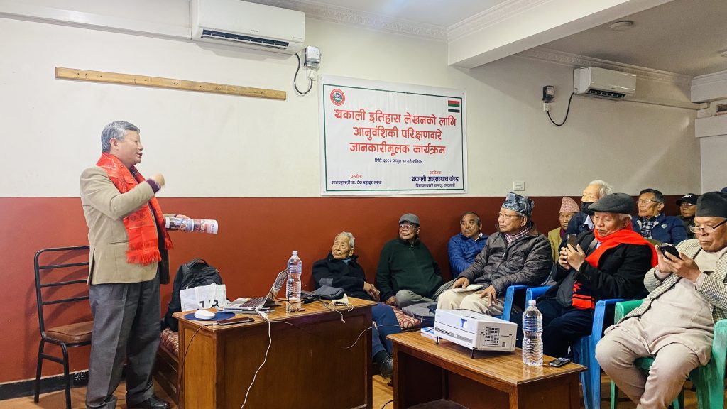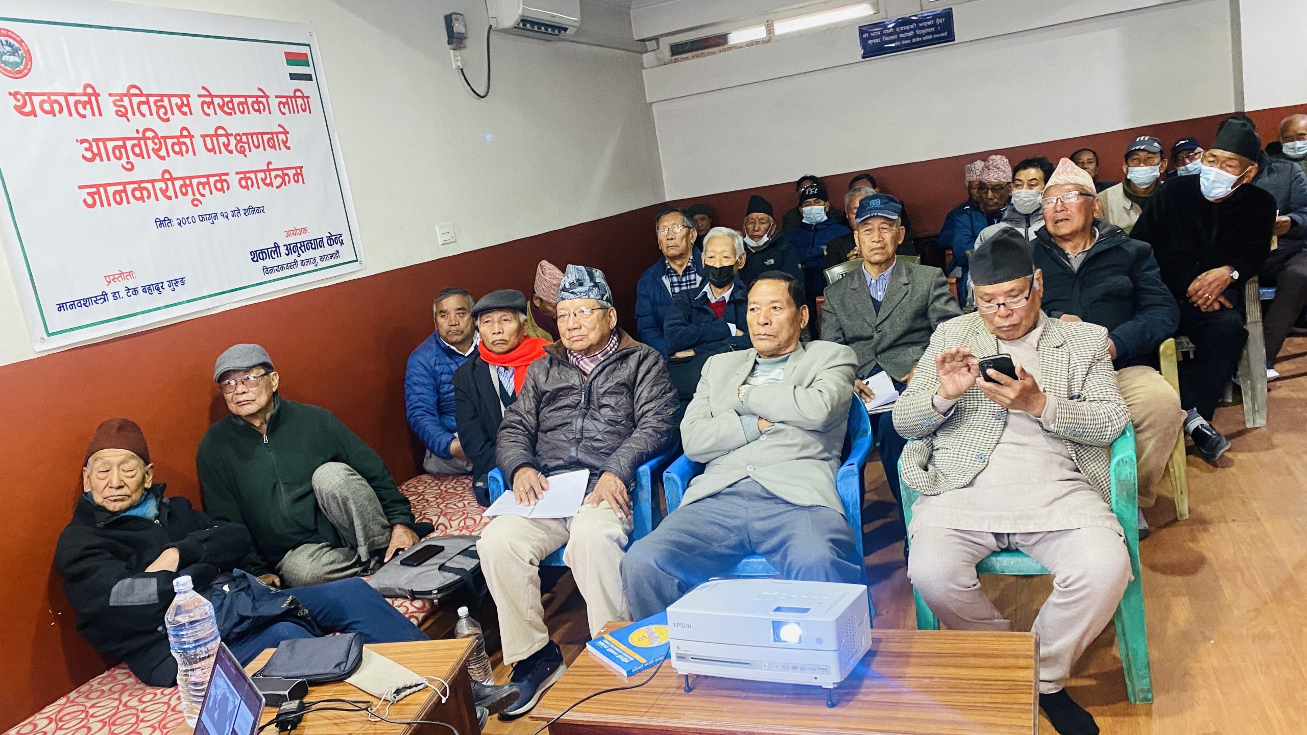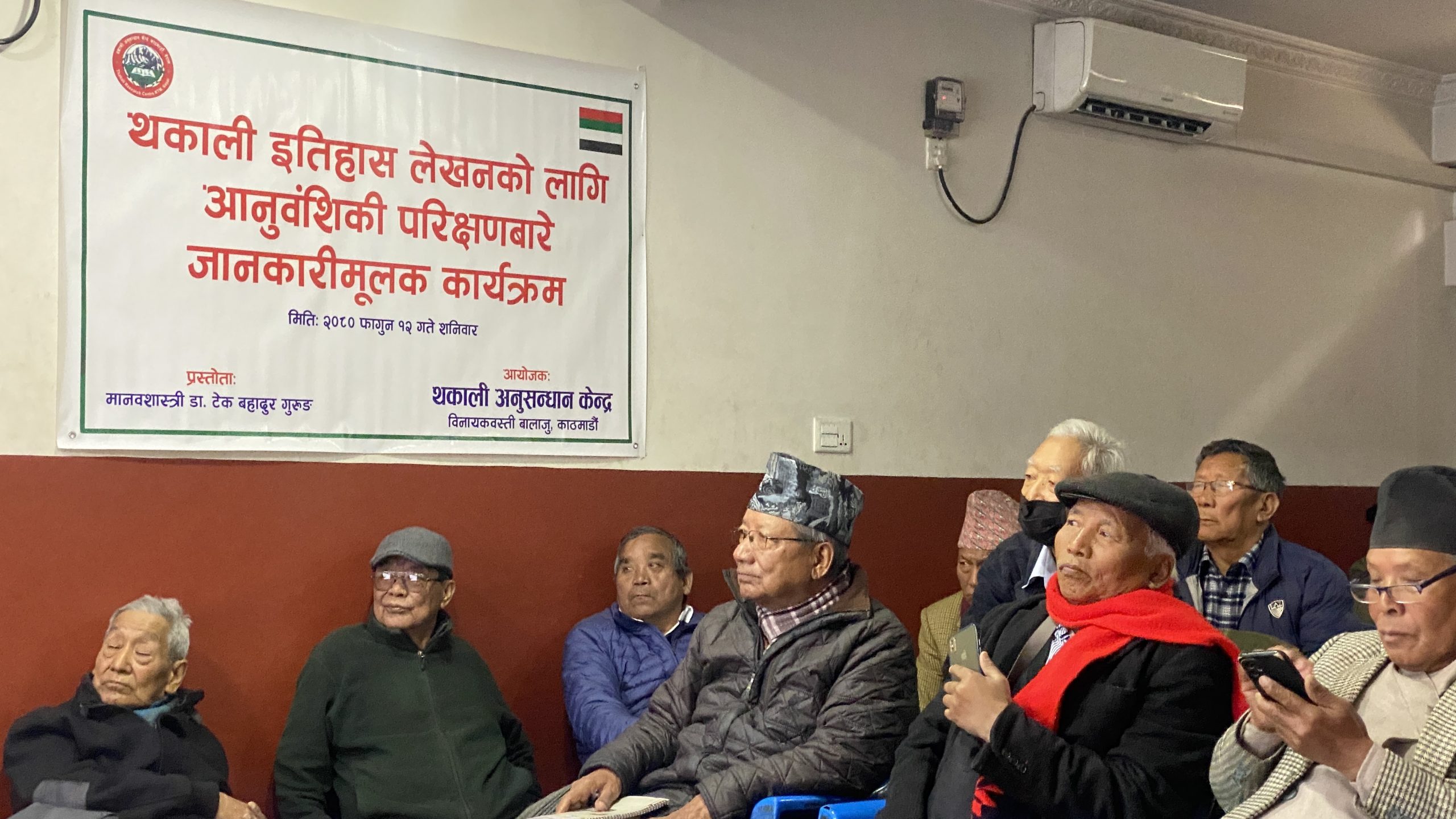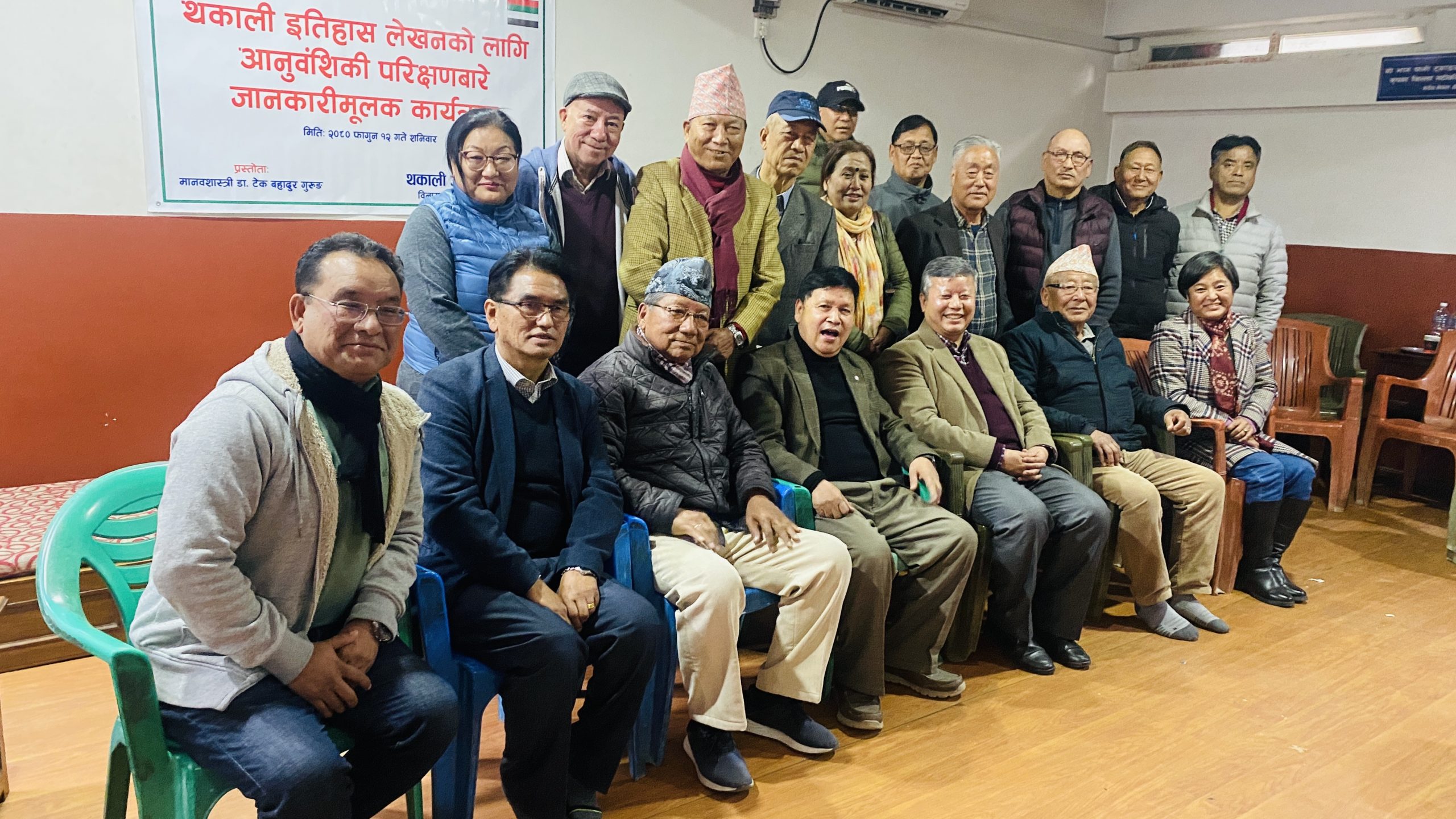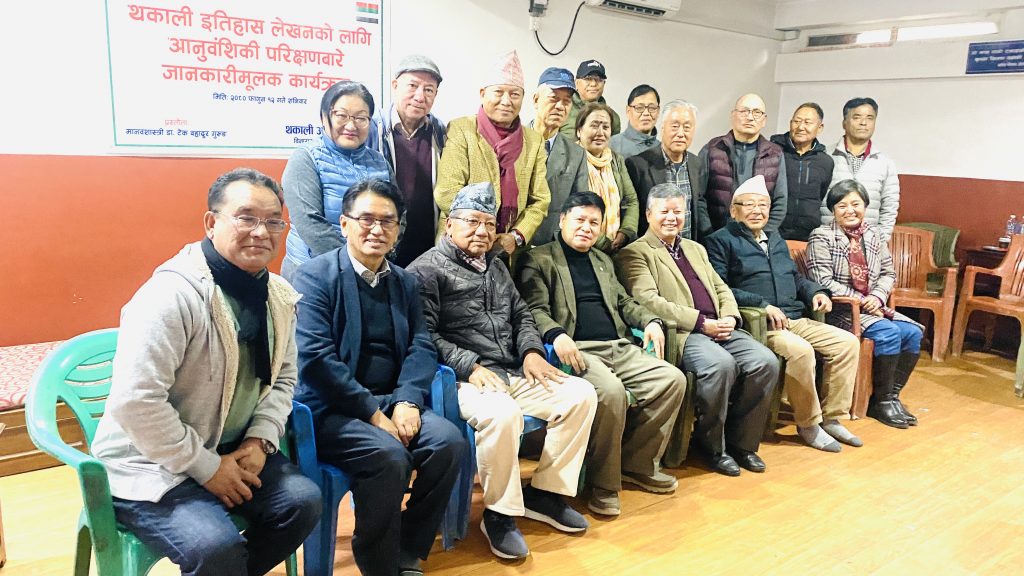 मिति २०८० फागुन १२ गते शनिवारको दिन थकाली अनुसन्धान केन्द्रद्वारा आयोजित थकाली इतिहास लेखनका लागि आनुवंशिकी (DNA)परिक्षणबारे जानकारीमूलक कार्यक्रमको प्रस्ताेता विशेष अतिथि समाजशास्त्री डा.टेकबहादुर गुरूङज्यूबाट सौहार्दपूर्ण वातावरणमा थसेस नेपाल क्षेत्रीय समिति काठमांडौकाे सभाहलमा सम्पन्न भयाे । सर्वप्रथम् कार्यक्रममा विशिष्ट अतिथि मानवशास्त्री डा.टेकबहादुर गुरूङज्यू र उहाँको धर्मपत्नि श्रीमती अनिता गुरूङद्वयलाई अध्यक्ष नरेशकुमार तुलाचनज्यूले खादाले स्वागत गर्नु भएको थियो ।